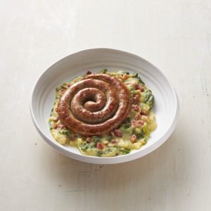 „Spieß“ mit Bratwurstschnecke