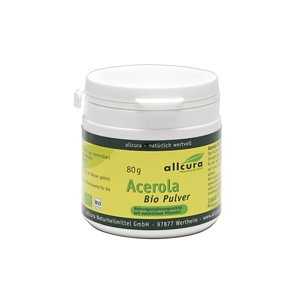 Zutaten: Acerolakirsch-Saft (Malpighia punicifolia) aus kontrolliert biologischen Anbau, Trägerstoff: Bio-Maltodextrin. Acerola Bio Pulver enthält ca. 17 % natürliches Vitamin C.