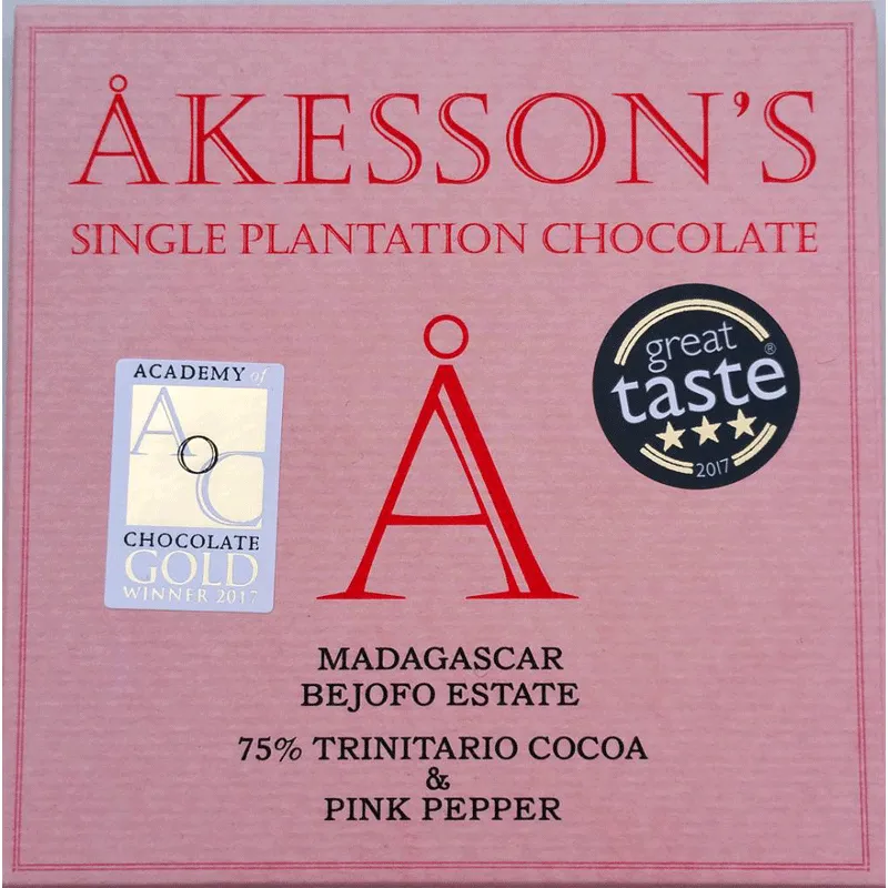 Akesson’s Dunkle Schokolade 75% Trinitario Cocoa & Rosa Pfeffer