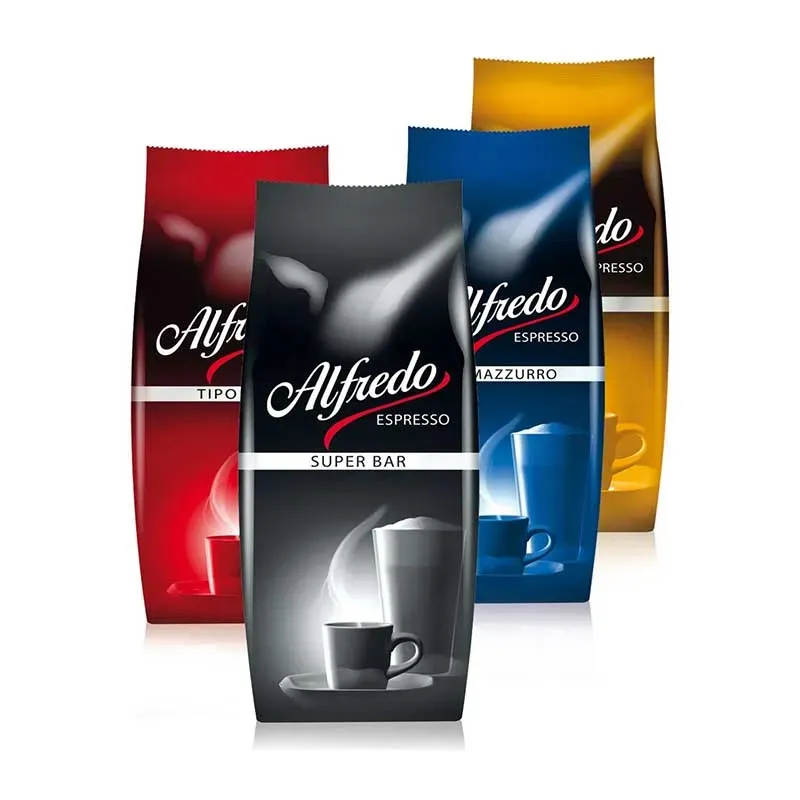 - Sie erhalten jeweils einen 1000g Pack der Sorten: Alfredo Super-Bar, Tipo-Bar, Cremazzurro und Alfredo Caffe Creme.