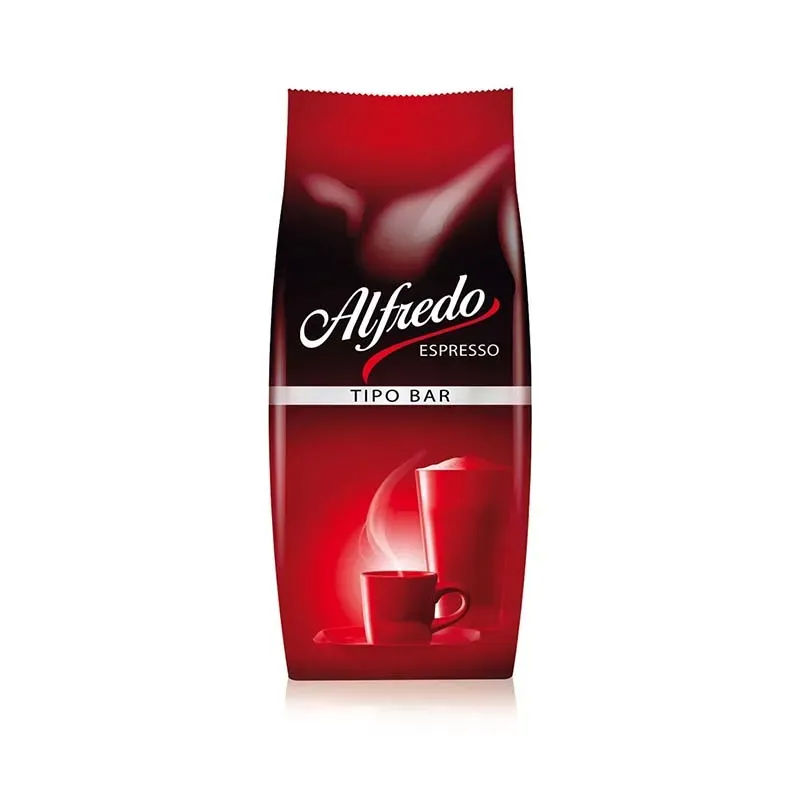 lfredo Espresso Tipo-Bar wird einer besonders schonenden Röstung unterzogen, die aber sein vollmundiges Aroma bewahrt. Die außergewöhnlich feinporige Crema spendet einen vollendet würzigen Geschmack. Die Kaffeebohne ist ideal zur Verwendung in Halbautomaten und Vollautomaten. Im Café, Hotel, Restaurant oder Büro wird zudem seine hohe Ergiebigkeit geschätzt.