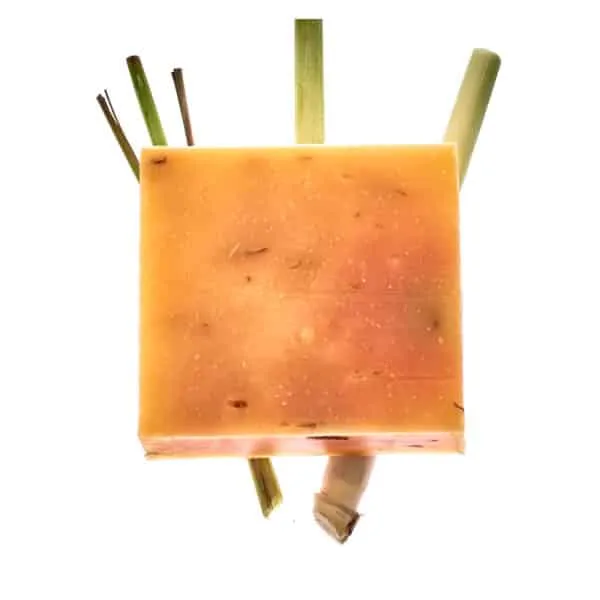 Inhaltsstoffe: Bio-Kokosöl und Bio-Sonnenblumenöl verseift, Bio-Kokosöl und Bio-Sonnenblumenöl als Rückfetter, Wasser, Bio-Glycerin, Bio-Kakaobutter, Lemongrassöl, Litsea Cubebaöl.