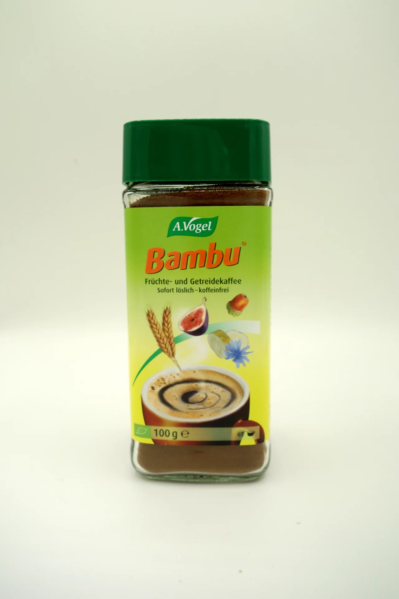 Aromatischer und volllöslicher Früchte- und Getreidekaffee-Extrakt aus kontrolliert biologischem Anbau. Ohne Koffein, daher auch für abends oder Personen mit Magenproblemen geeignet.