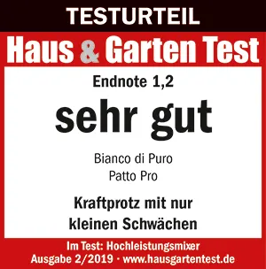 Der Hochleistungsmixer & Blender gehört zu den Premiumprodukten unter den Standmixern und verfügt im Vergleich zu anderen Mixern wie Vitamix über ein ausgezeichnetes Preis- und Leistungsverhältnis. Der Patto Pro von Bianco startet mit 500 UpM in einem sehr niedrigen Drehmoment, was sehr wichtig ist, wenn man die Zutaten nur grob zerkleinern möchte. Der Hochleistungsmixer kann dann für ein faserfreies Mixergebnis auf bis zu 15000 Umdrehungen in der Minute beschleunigt werden.