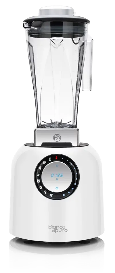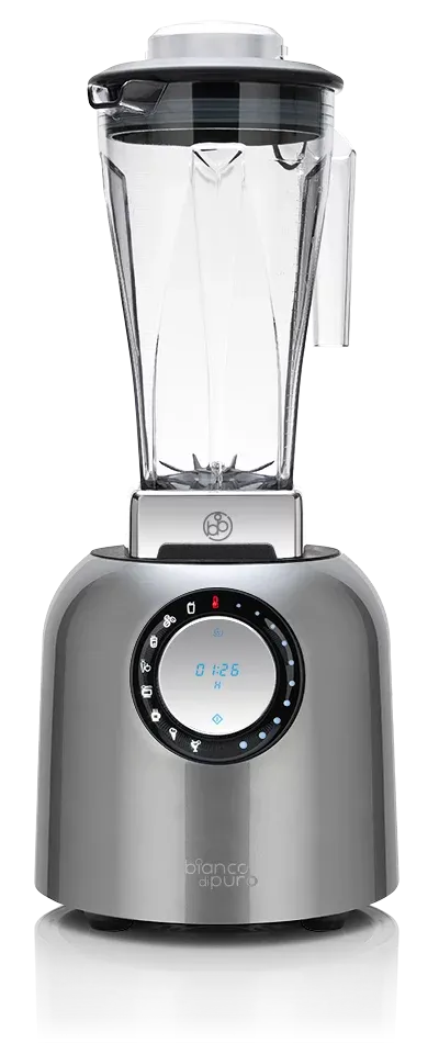 Der Mixer verfügt aber nicht nur über Automatik-Programme, sondern hat auch die Möglichkeit individuell und manuell gesteuert zu werden. Hierfür steht dem Nutzer ein modernes Display zur Verfügung. Hierauf werden die Laufzeit und Stufen angezeigt. In Verbindung mit der Pulse-Taste entsteht beim Bianco Puro S somit höchster Bedienkomfort der keine Wünsche offen lässt.