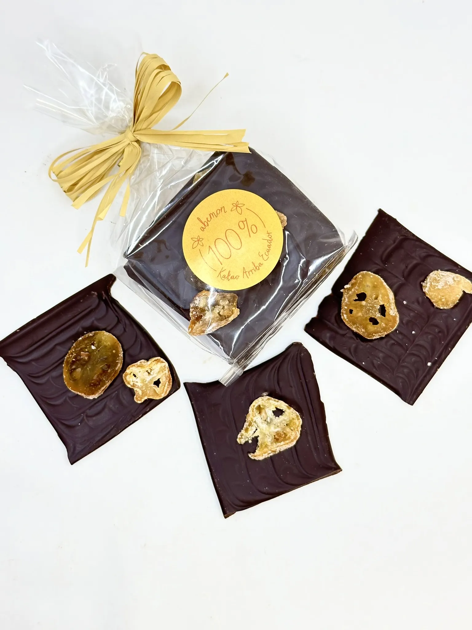 Dank der engen Zusammenarbeit mit den dortigen Kooperativen und Verarbeitern, können wir Schokolade kreieren, wie wir uns sie vorstellen: nachhaltig in Ecuador erst verarbeitet, dann auf direktem Weg zu uns importiert und in der eigenen Manufaktur weiterveredelt. Ganz dünn und als quadratische Stücke gießen wir unsere Schokoladen in Form und veredeln sie mit getrockneten, kandierten Kumquats. Hier gilt die Fruchtigkeit beider Produkte in einem leckeren und gesunden Snack zu vereinen. Die Kumquats schneiden wir ganz fein in Scheiben und geben sie in die Schokolade ein. Der Biss ist weich und verschmelzt perfekt mit der Schokolade