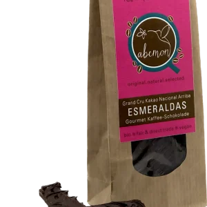 Dunkle Schokolade ist unsere Leidenschaft und dunkler wie 100% geht es nicht mehr! Diese zarten Schokoladen-Stückchen werden aus 100% Kakaobohnen verarbeitet und ohne Zusatz an Zucker – daher zuckerfrei – extra Kakaobutter oder Ersatzfetten. Nur erlesenen Kakaobohnen der Grand Cru Region GUAYAS in Ecuador kommen hier zum Einsatz.
