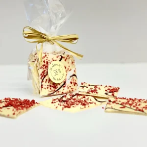 Genusstipp: Immer in kleineren Stücken brechen, kurz kauen – wegen der Physalis – aber dann noch ein Weilchen in den Gaumen und auf der Zunge schmelzen lassen. Auf dieser Weise können unsere Geschmacksknospen den weitesten Vielfalt dieser exotische Kombination entschlüsseln. Viel Genuss damit!