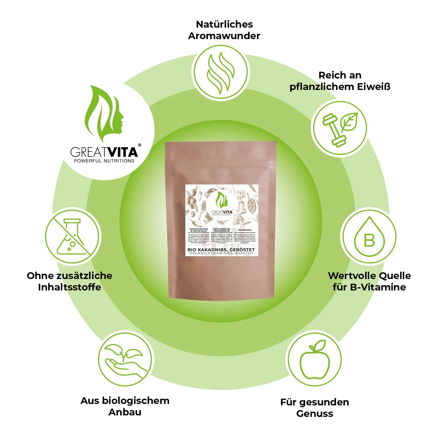 • NATURAL HEALTH: Wir stehen auf Bio und beziehen die Kakaobohnen für unsere Kakaonibs daher selbstverständlich aus biologischem Anbau. Bei Deiner Gesundheit und Deinem Genuss machen wir keine Kompromisse.
