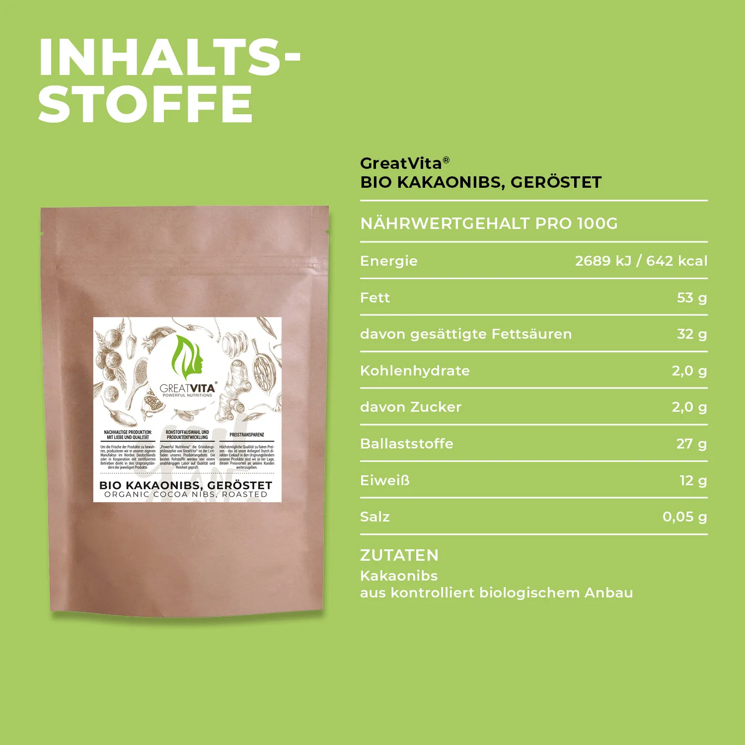 • HOCHWERTIG UND REIN: Unsere gerösteten Bio Kakaonibs bestehen zu 100% Kakaobohnen. Außerdem sind sie vegan und frei von Gluten, Gentechnik, Süßstoffen, künstlichen Aromen und anderen Chemikalien.