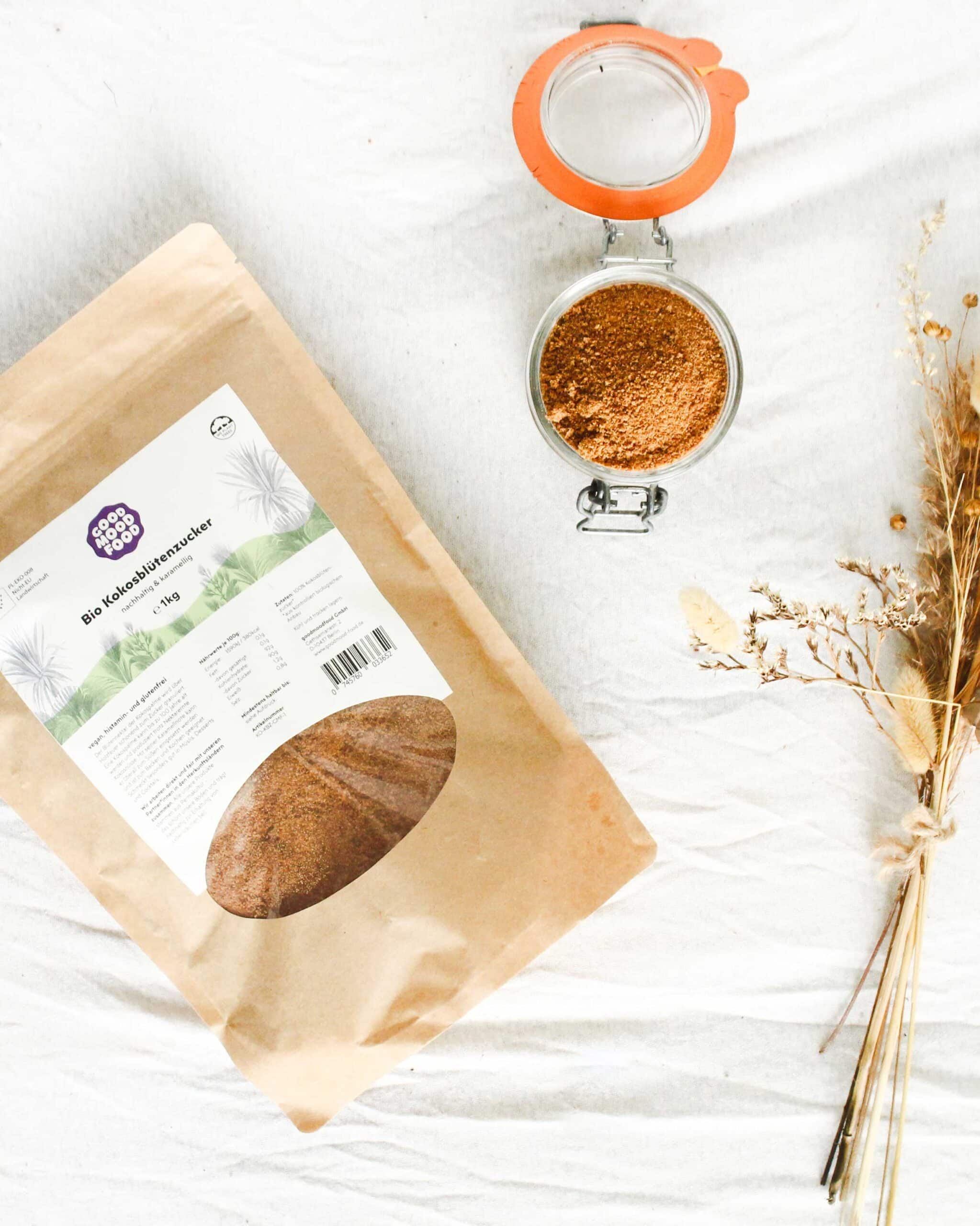 Kleiner Tipp: Wem die Farbe beim Backen wichtig ist, sollte wissen, dass Bio Kokosblütenzucker durch die minimale Verarbeitung den Teig immer leicht bräunlich färbt.