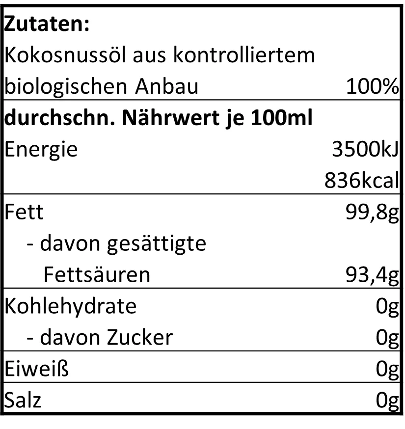 Unser Kokosöl ist die perfekte Wahl für alle, die Wert auf Reinheit, Qualität und nachhaltige Produktion legen. Es vereint gesunde Ernährung und sanfte Pflege in einem Produkt, das Ihnen und der Natur zugutekommt. Entscheiden Sie sich für ein Kokosöl, das in Handarbeit hergestellt wird und alle Vorteile der Kokosnuss in seiner reinsten Form bietet. Holen Sie sich das Beste aus der Natur in Ihre Küche und Ihr Pflegeprogramm und erleben Sie die zahlreichen Möglichkeiten unseres nativen Bio Kokosöls!