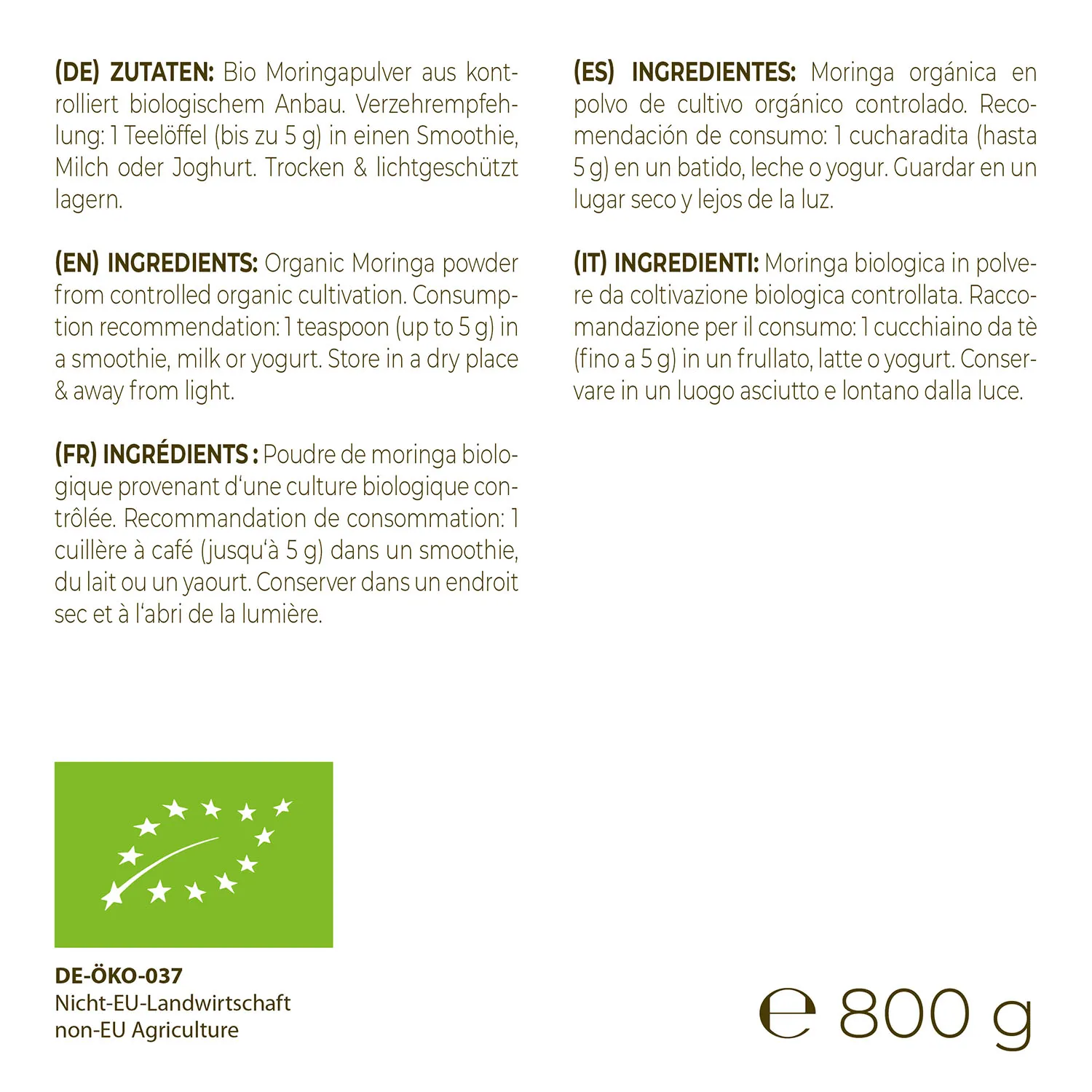 Bio Moringa ist frei von künstlichen Aromen, Farb- und Süßstoffen.