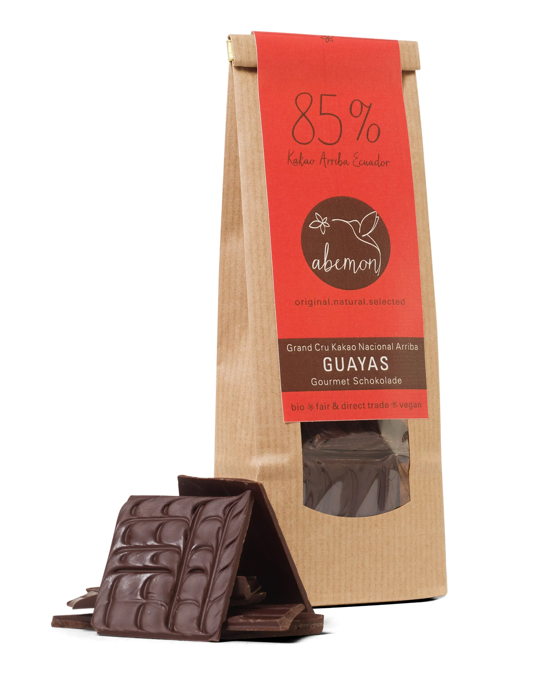 Die erste Verarbeitung unserer Kakaobohnen findet im Ursprung statt, damit es vor Ort Entwicklung und Beschäftigung entsteht. Das ist unsere Idee von einer nachhaltigen Schokolade. Anschließend importieren wir auf direktem Weg unsere Schokoladenprodukte und in unser eigenen Manufaktur verleihen wir den letzten Schliff der Veredelung. Ganz dünn und als quadratische Stücke gießen wir unsere Schokoladen in Form und verpacken sie in einem wieder verschließbaren Beutel. Denn als Schokoladenliebhabern wissen wir, dass dunkle Schokolade sich in kleinen Portionen am besten genießen lässt! Alles in liebevoller Handarbeit gemacht!
