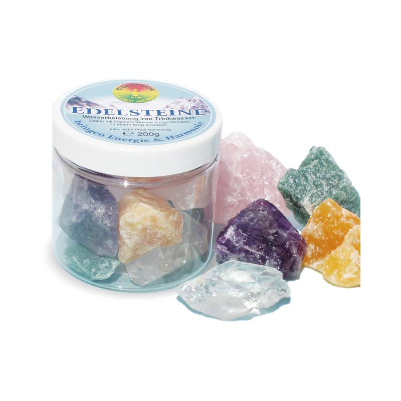 Naturbelassene Edelsteine zur Wasserbelebung.
