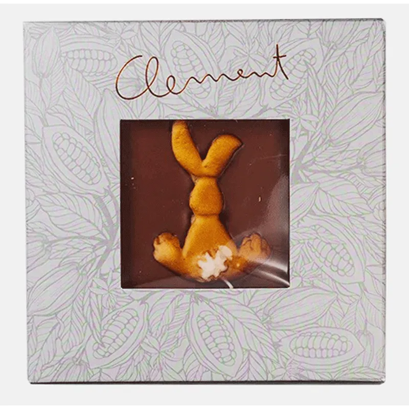 Auch in diesem Jahr ist er wieder da, der Hase von hinten mit dem süßen Puschelschwänzchen. Er befindet sich mitten auf der nicht allzu dunklen, handgeschöpften Osterschokolade mit 60% Kakaoanteil aus dem Hause Clement, hergestellt aus Kuvertüre der feinen Schweizer Adresse Felchlin. Das handgemachten Hasenmotiv shaut immer wieder anders aus. Ein feines Präsent für liebe Menschen.