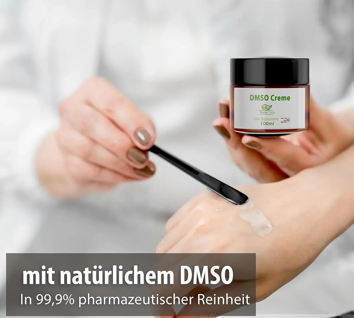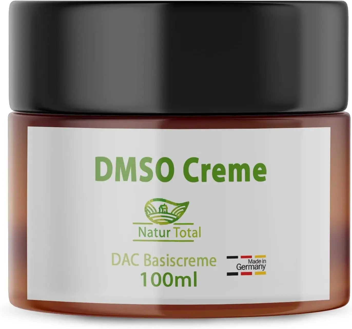 • Natur Total DMSO Creme Dimethylsulfoxid 99,9% Reinheit – 100ml – in hochwertiger Basicreme nach DAC Deutschem Apotheken Codex – brauner Apotheker Glastiegel