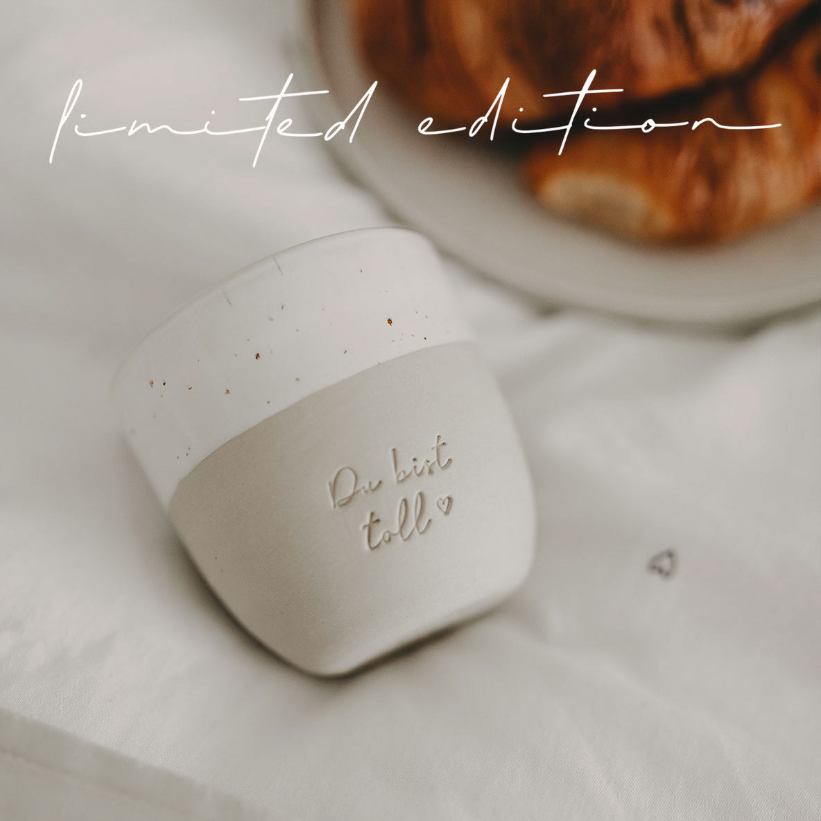 Eine kleine Töpferei aus Portugal produziert diese wundervollen Becher in liebevoller Handarbeit & ist ein großartiger neuer Begleiter auf unserem kreativen Weg. Diese Becher lassen die Herzen höher schlagen, die die Individualität von Ton & Glasur lieben, denn jeder einzelne Becher hat seinen ganz eigenen Touch. Da alle Becher mit der Hand gefertigt, gebrannt, geprägt, abgeschliffen, geglazt & nochmal gebrannt werden, gibt es Unterschiede in der Drucktiefe, in der Höhe sowie der Geradlinigkeit.