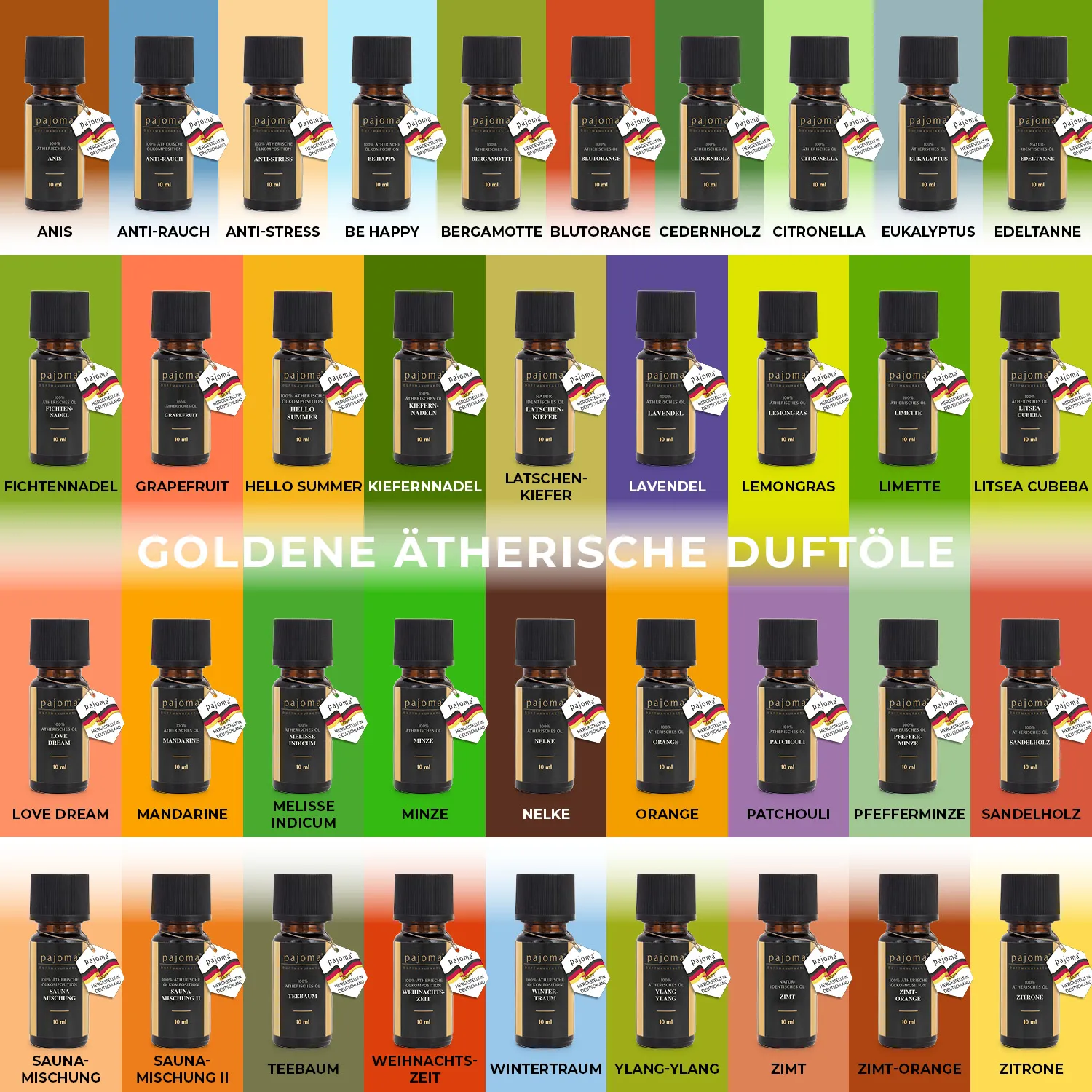 Lassen Sie sich von unserer breiten Auswahl an angenehmen Duftölen überraschen und verzaubern Sie Ihre Wohnung, Ihr Büro oder Ihr Badezimmer in eine wahre Wohlfühloase. Unsere ätherischen Öle sind hochkonzentriert und naturrein, ohne jegliche Zusatzstoffe, und sie durchlaufen regelmäßige Qualitäts- und Reinheitstests in Speziallabors, um Ihnen das Beste zu bieten.