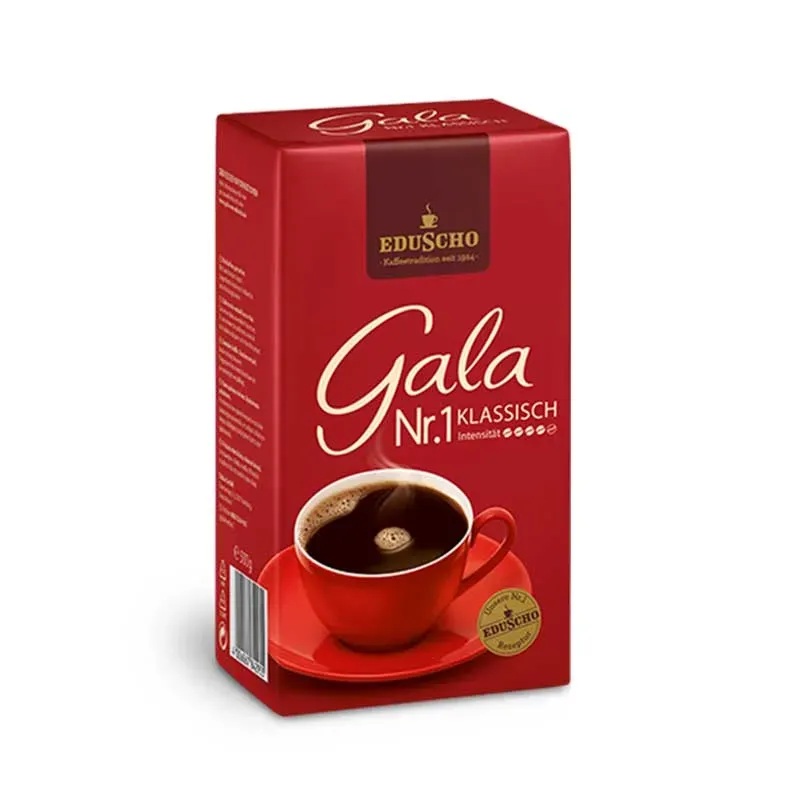 Gala von Eduscho Nr. 1 Klassisch ist eine sorgfältig ausgewählte Mischung feiner Arabica- und intensiver Robusta-Bohnen.