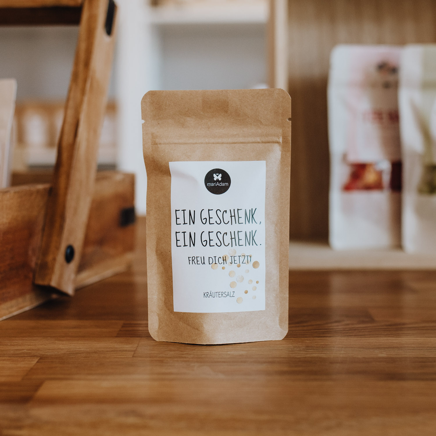 Kräutersalz | Botschaft “Ein Geschenk, ein Geschenk, freu dich jetzt” | 30g | wiederverschließbare Verpackung | ohne Dekoration