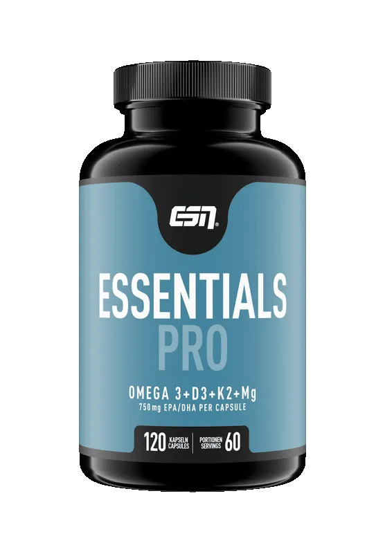 Das Produkt für die ideale Versorgung deines Körpers. Es schafft eine gesundheitliche Basis für eine optimale Performance und Regeneration und unterstützt dein Herz, deine Muskeln, dein Gehirn und deine Knochen. ESN Essentials Pro beinhaltet die vier essentiellen Nährstoffe Omega-3, Vitamin D3, Vitamin K2 und Magnesium.