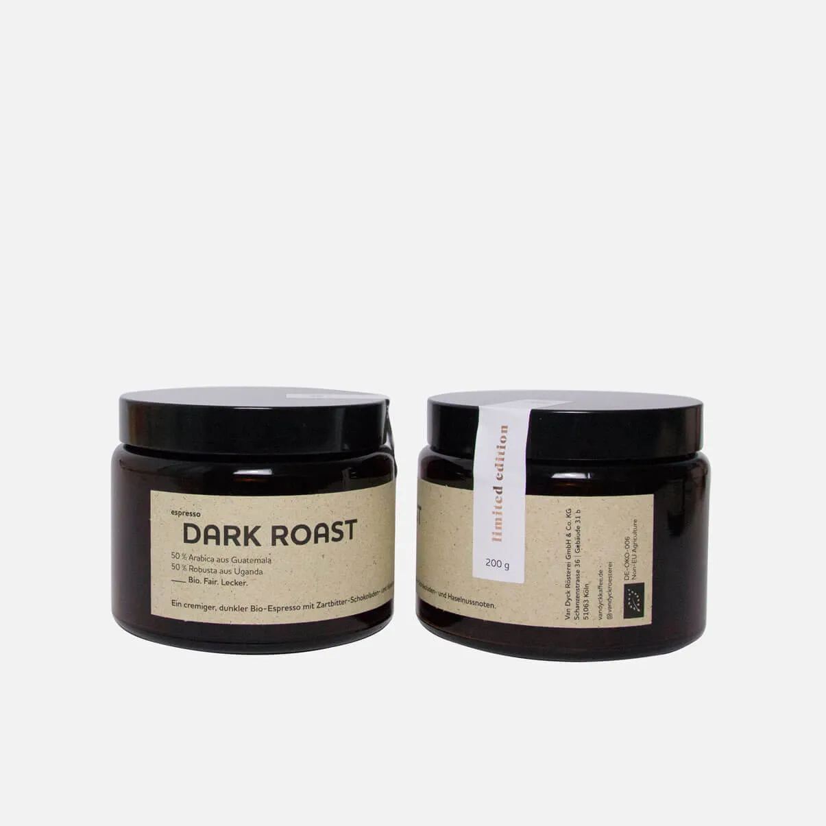 | Nachhaltigkeit trifft Genuss | Unser Espresso kommt in einem hochwertigen 200g Apothekerglas – ideal als Geschenk für alle, die guten Kaffee schätzen und Van Dyck noch entdecken möchten. |