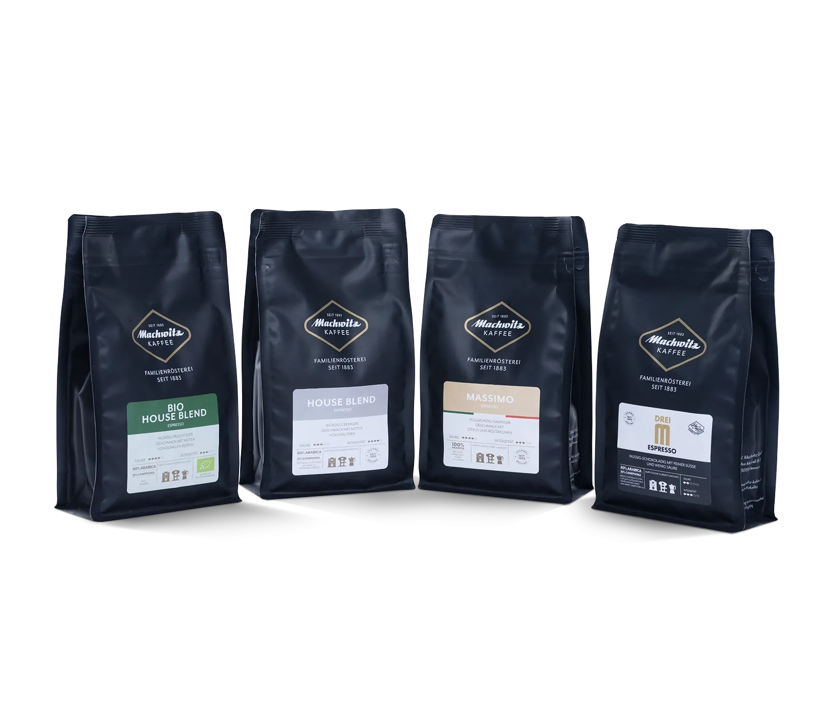 - 4 verschiedene Espresso-Röstungen (Bio House Blend Espresso, House Blend Espresso, Massimo Espresso, DreiM Espresso)