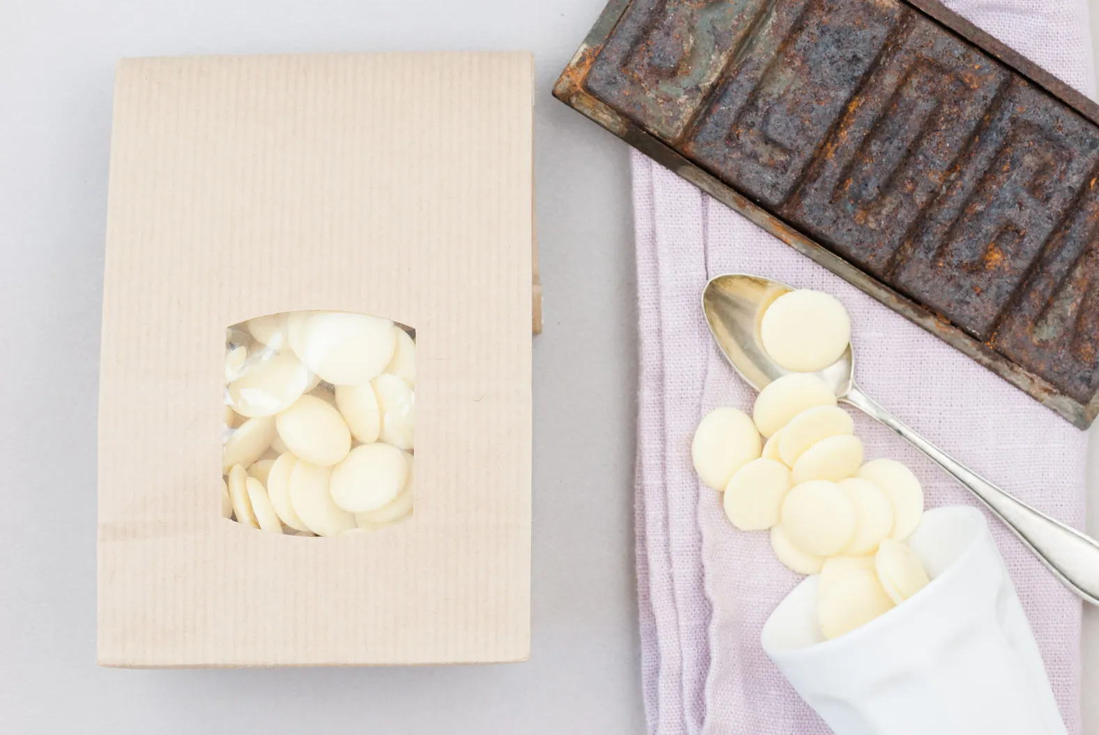 Schöne Fliessfähigkeit, schmeckt so, wie eine weisse Kuvertüre schmecken sollte – fein und dezent. Wir verwenden diese Kuvertüre selbst für unsere Produkte.