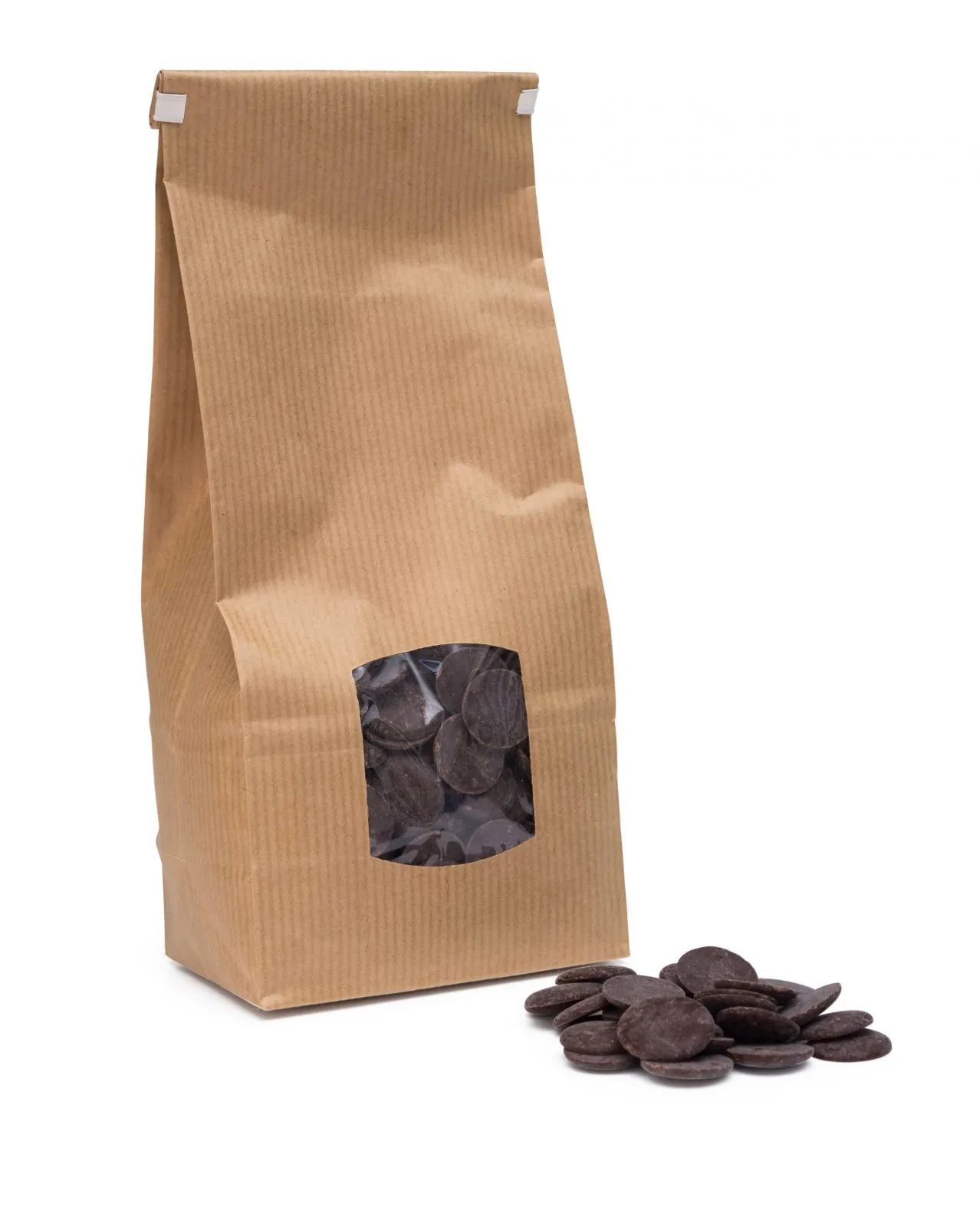 500g verpackt in einem Kraftpapier-Beutel mit Fettschutzbeschichtung innen und transparentem Fenster an der Vorderseite.