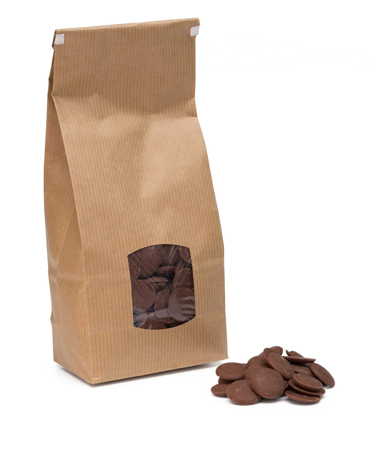 500g verpackt in einem Kraftpapier-Beutel mit Fettschutzbeschichtung innen und transparentem Fenster an der Vorderseite.