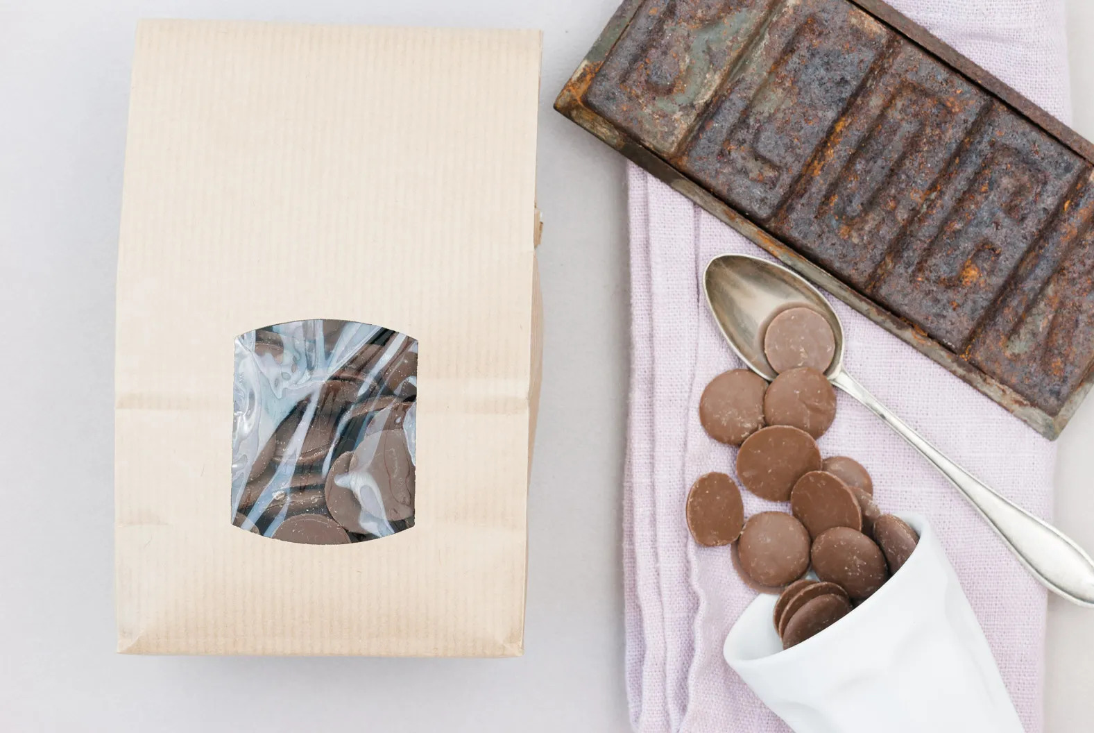 Durch die Chip-Form lässt sich die Kuvertüre gut dosieren.