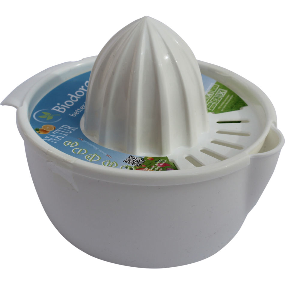 Durchdachte Fruchtpresse zum auspressen von Zitronen, Limetten, Orangen etc. Umweltfreundlich aus Biokunststoff (Bio-PE) gefertigt. Hergestellt in der EU von Biodora. Aus nachwachsenden Rohstoffen, Mineralien und Wachsen.