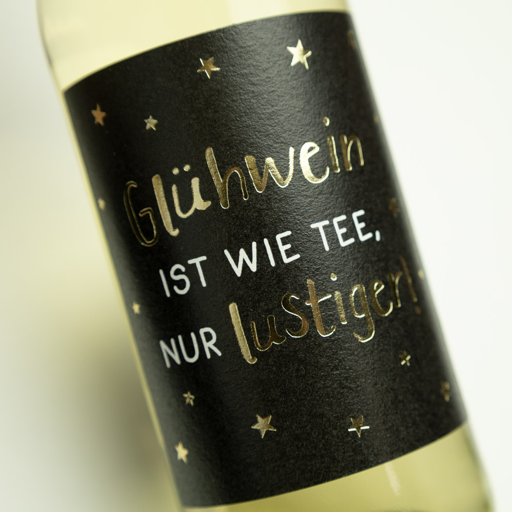 Dieser Glühwein mit dem Spruch “Glühwein ist wie Tee” bringt Humor und festliche Stimmung in die Weihnachtszeit. Diese kleine Glühwein-Flasche ist ein perfektes Geschenk zu Weihnachten, Nikolaus oder als Wichtelgeschenk.