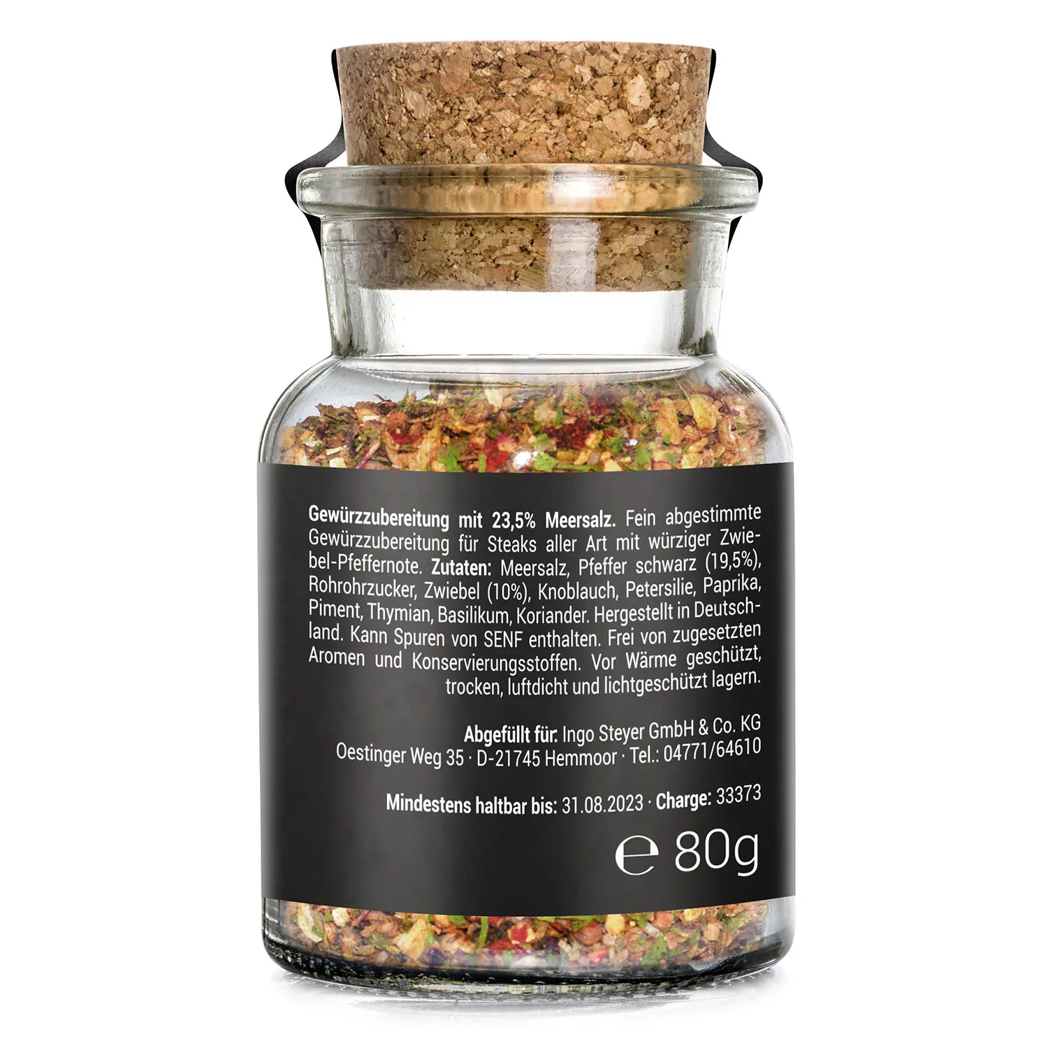 • Zutaten: Meersalz, Pfeffer schwarz, Rohrohrzucker, Zwiebel, Knoblauch, Petersilie, Paprika, Piment, Thymian, Basilikum, Koriander