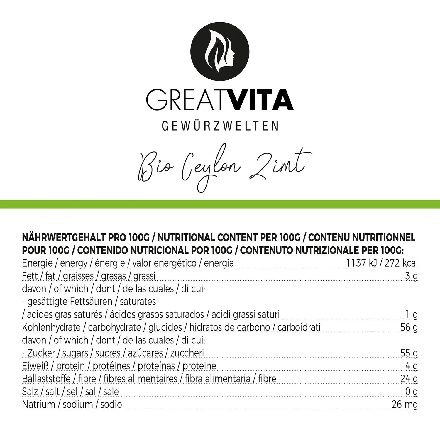 Schreibe die erste Bewertung für „GreatVita Bio Ceylon Zimt, gemahlen, 100% echtes Zimtpulver 500g im Beutel“