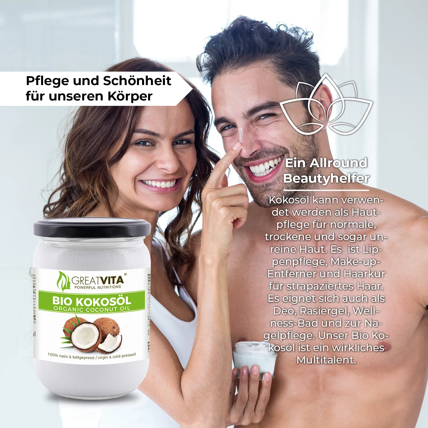 Unser Bio Kokosöl nativ ist wahrhaft ein Multitalent für Küche und Bad.