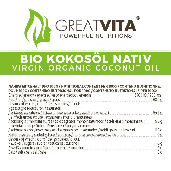 Schreibe die erste Bewertung für „GreatVita Bio Kokosöl, nativ, 500 ml im Glas zum Kochen & Backen, Hautpflege Kokosnussöl“