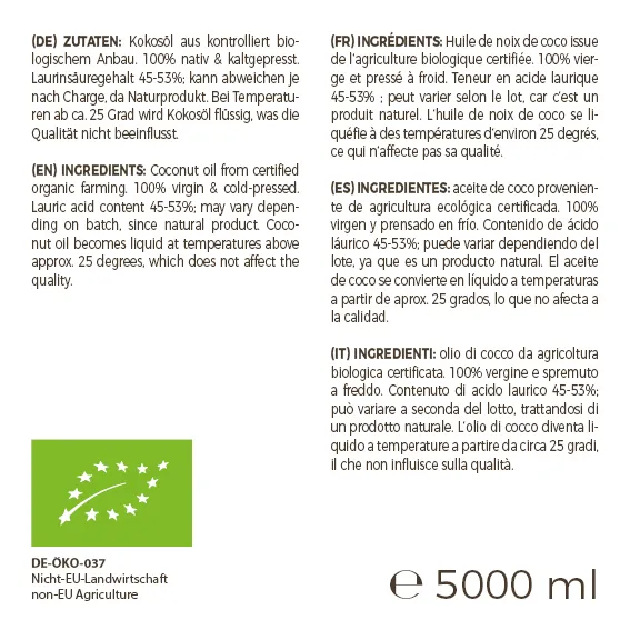Unser Bio Kokosöl kaltgepresst wird in Sri Lanka (Südasien) aus sonnengereiften Kokosnüssen aus biologischem Anbau gewonnen, die schonend in einer Kaltpressung verarbeitet werden, so dass die Kokosnüsse noch randvoll mit wertvollen Nährstoffen sind.
