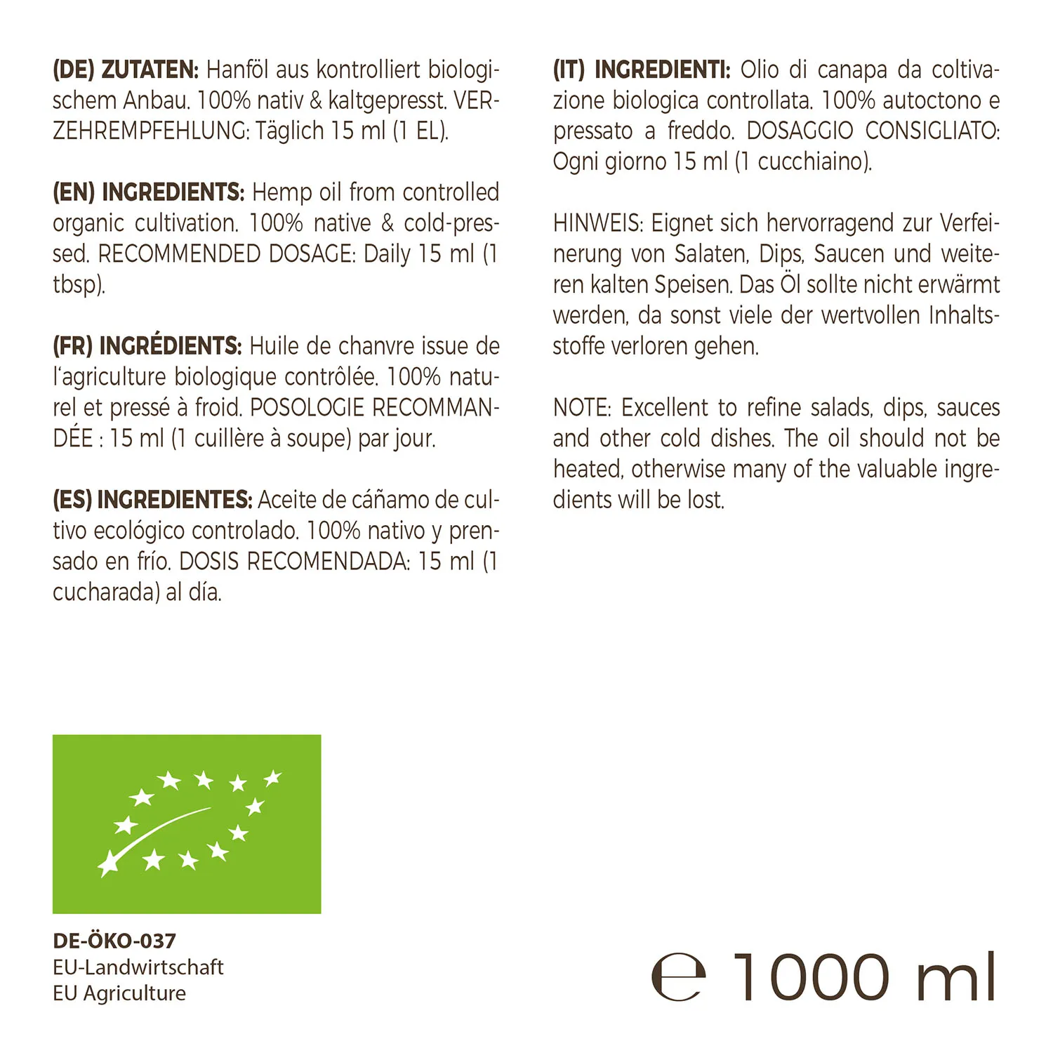 Don’t Panic! Hanföl wird aus Hanfsamen gewonnen, die völlig harmlos sind. Fressflash und eskalierende Gemütlichkeit gehören also nicht zu den Nebenwirkungen des Öls. Tatsächlich ist es so proppevoller Mineralstoffe, Vitamine und ungesättigter Fettsäuren, dass kein Platz für irgendwelche Nebenwirkungen bleibt. Seinen Ruf als eines der besten Speiseöle ever hat sich das Hanf-Highlight also wohlverdient. Und das Beste: Es stärkt nicht nur von innen sondern auch von außen. Auch Deine Haut ist hanfbar und wird vom Öl samtweich. In der Haarpracht bekämft es erfolgreich Schuppen und bewahrt die optimale Freshness, die Deinen Kopf in der Abendsonne glänzen lässt. Natürlich empfiehlt sich der exquisite, nussige Geschmack auch einfach so zum Verzehr, achte hierbei jedoch darauf, es nicht höher als 160 Grad zu erhitzen, damit die kostbaren Inhaltsstoffe nicht zu Schadstoffen mutieren.