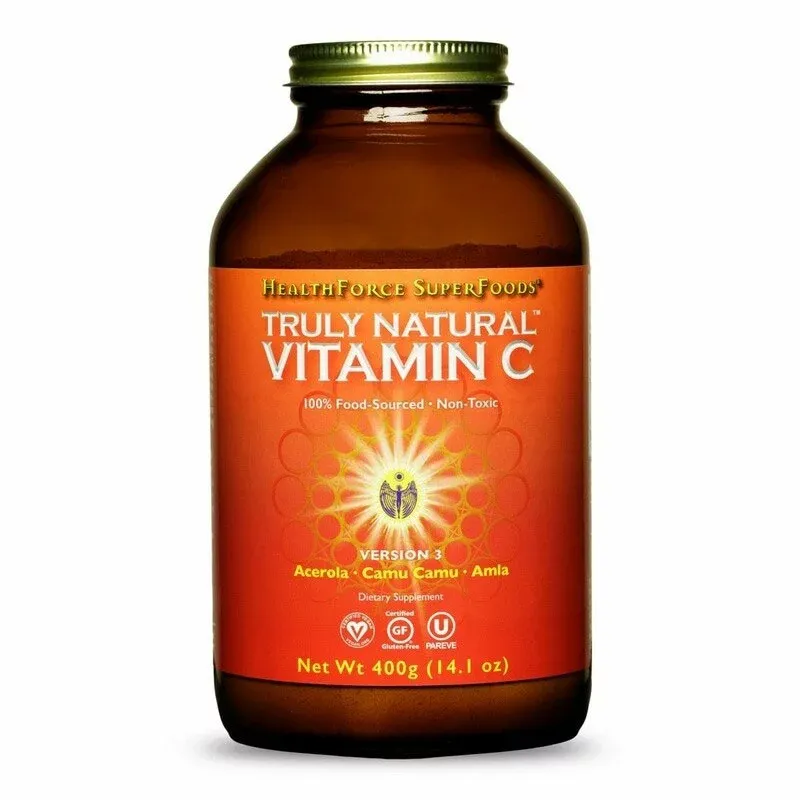 HealthForce wahrhaft natürliches Vitamin C liefert hochgradig bioverfügbares natürliches Vitamin C aus ganzen Camu-Camu-Beeren, ganzen Amla-Beeren und hochwertigem Acerola-Wasser-Extrakt.