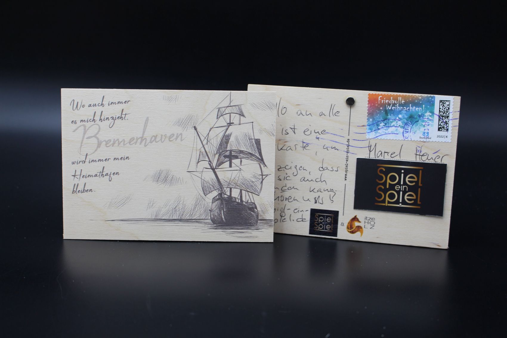 Und es gibt uch mehrere Hersteller für Ansichtskarten aus Holz.