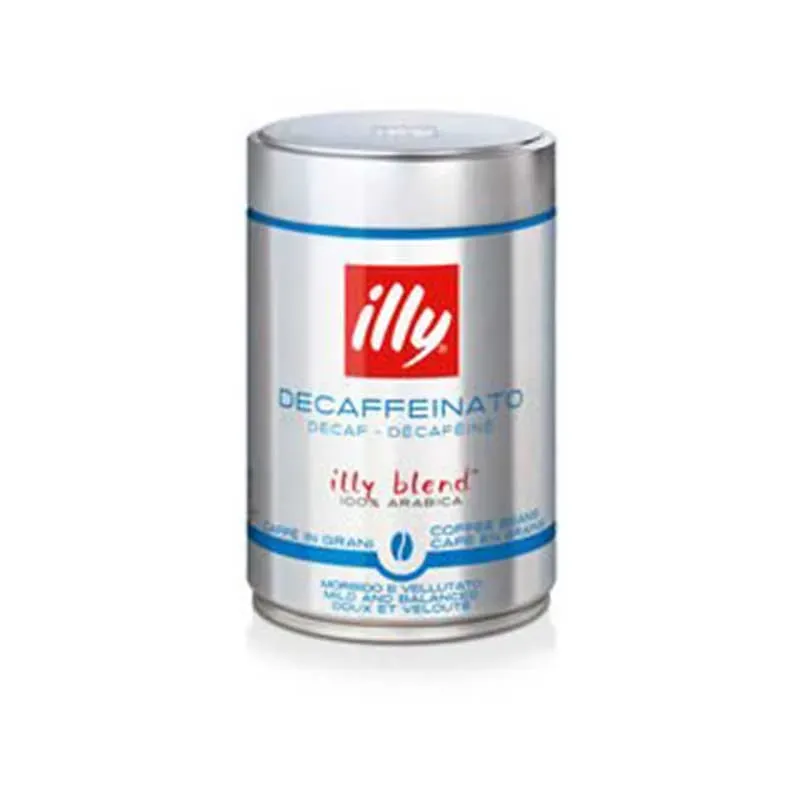 Der unverwechselbare illy Blend behält seinen Geschmack und Aroma auch entkoffeiniert. Koffeingehalt nicht höher als 0,1%. Kaffeebohnen entkoffeiniert.