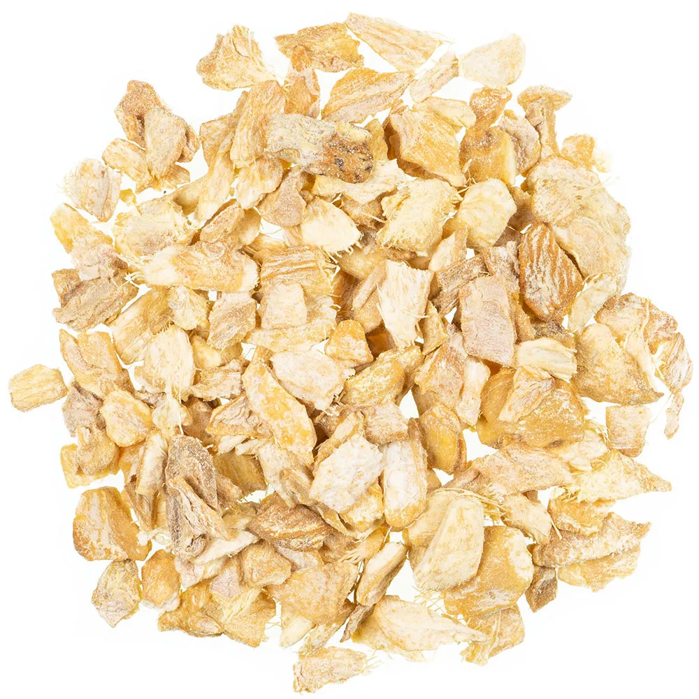 Kleine, getrocknete Ingwerstücke für einen intensiven, scharfen Tee. Ingwer besitzt eine desinfizierende Wirkung gegen Bakterien und Viren, wirkt durchblutungsfördernd, hemmt Erbrechen und Übelkeit, steigert die Produktion von Gallensaft und regt allgemein die Verdauung an.