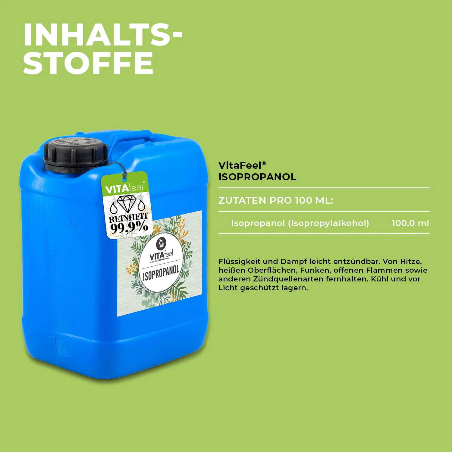 VitaFeel Isopropylalkohol 99,9%, Propan-2-ol klar, Isopropanol