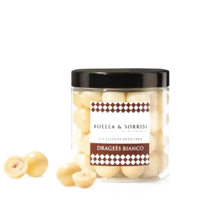 Unsere DRAGEES NOCCIOLE BIANCHE sind nicht nur ein wahrer Gaumenschmaus, sondern auch visuell ansprechend. Die elegante, weiße Zuckerschicht verleiht den Dragees ein ansprechendes Aussehen und macht sie zu einem perfekten Snack für besondere Anlässe oder einfach zum Genießen im Alltag. Sie eignen sich hervorragend als Geschenk oder zur Verfeinerung von Desserttischen und Buffets.