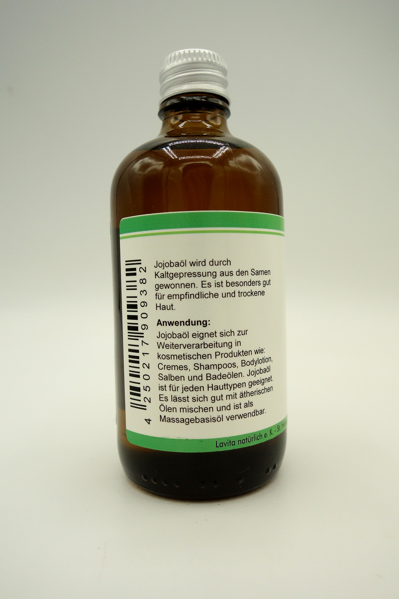 Produktbeschreibung: Jojobaöl Bio wird durch Pressung aus den Samen gewonnen. Es ist reich an vielen essentiellen Fettsäuren. Aus kontrolliert biologischen Anbau. vegan – tierversuchsfrei – ohne Gentechnik – ohne Konservierungsstoffe – 100 % natürliches Öl