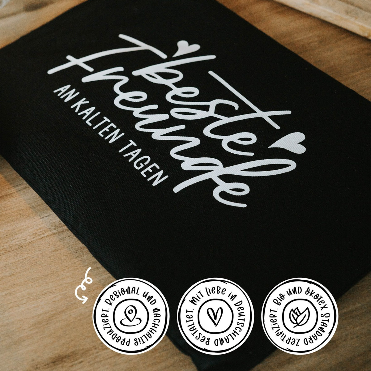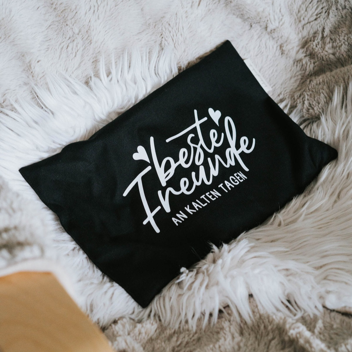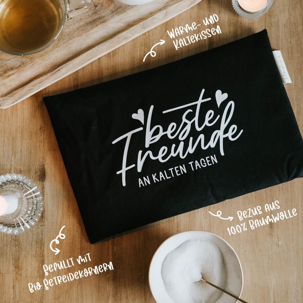 Körnerkissen | Wärme- und Kältekissen | Spruch “Beste Freunde an kalten Tagen” | 20 x 30 cm | gefüllt mit Bio-Getreidekörnern | 100% Baumwolle | ohne Dekoration