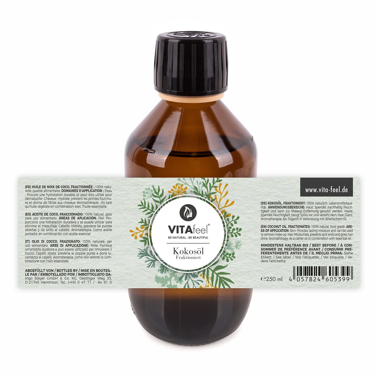 ✔ fraktioniertes, transparentes und flüssiges Kokosöl