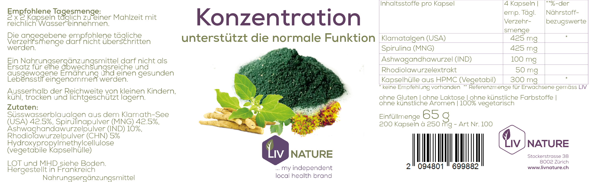 Die angegebene empfohlene tägliche Verzehrmenge darf nicht überschritten werden. Ein Nahrungsergänzungsmittel darf nicht als Ersatz für eine abwechslungsreiche und ausgewogene Ernährung und einen gesunden Lebensstil eingenommen werden.